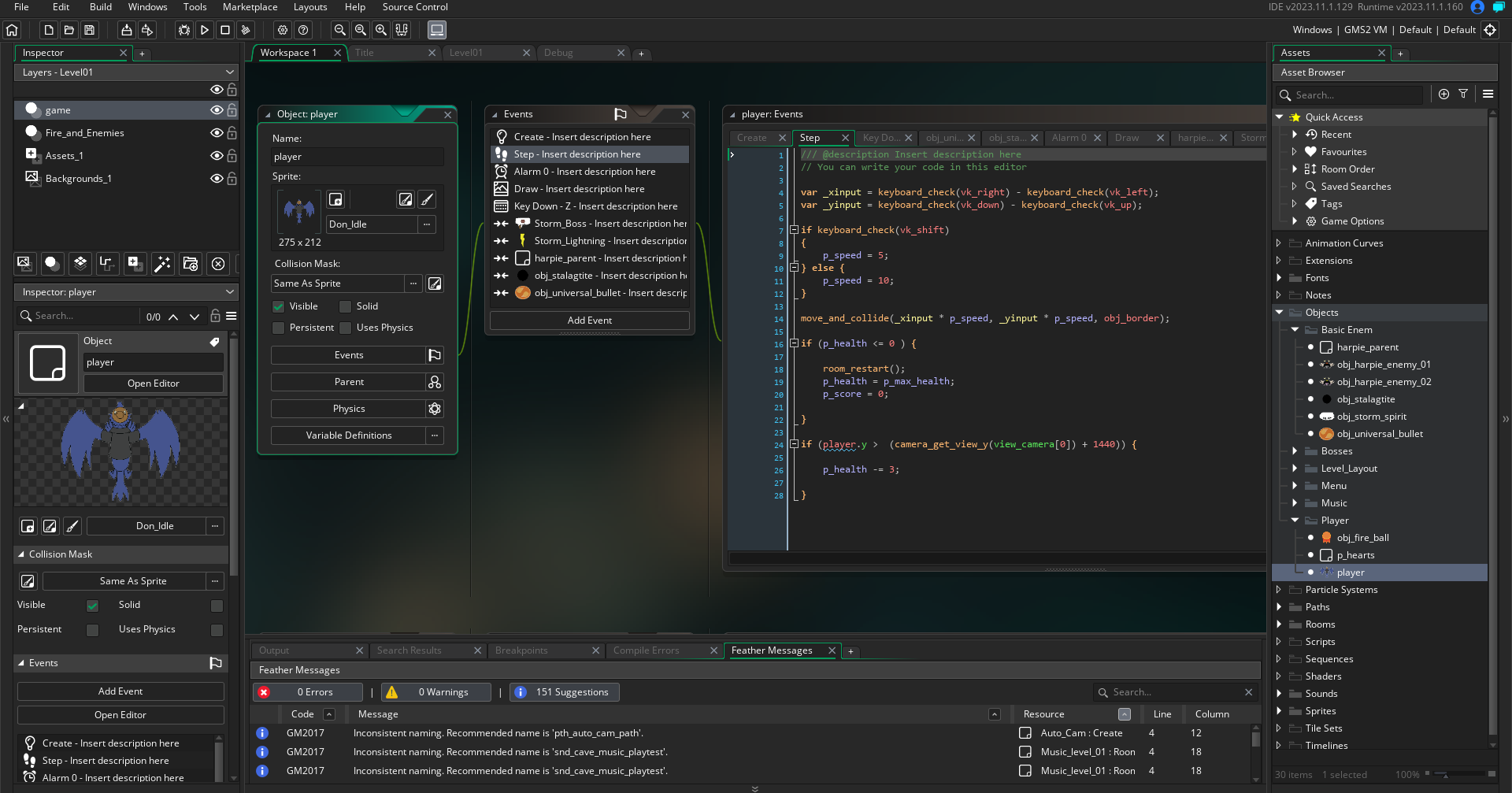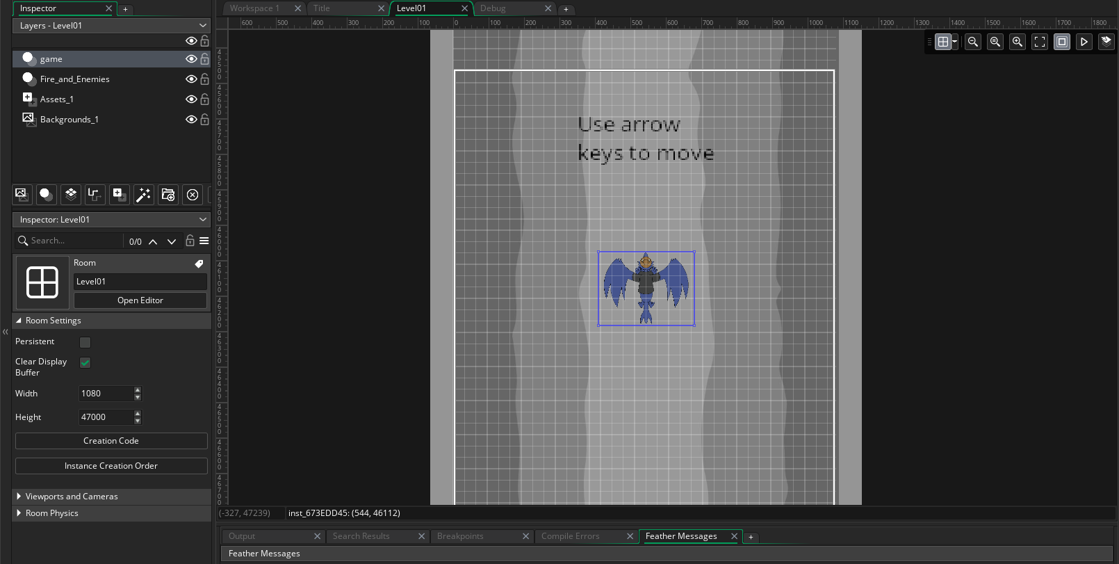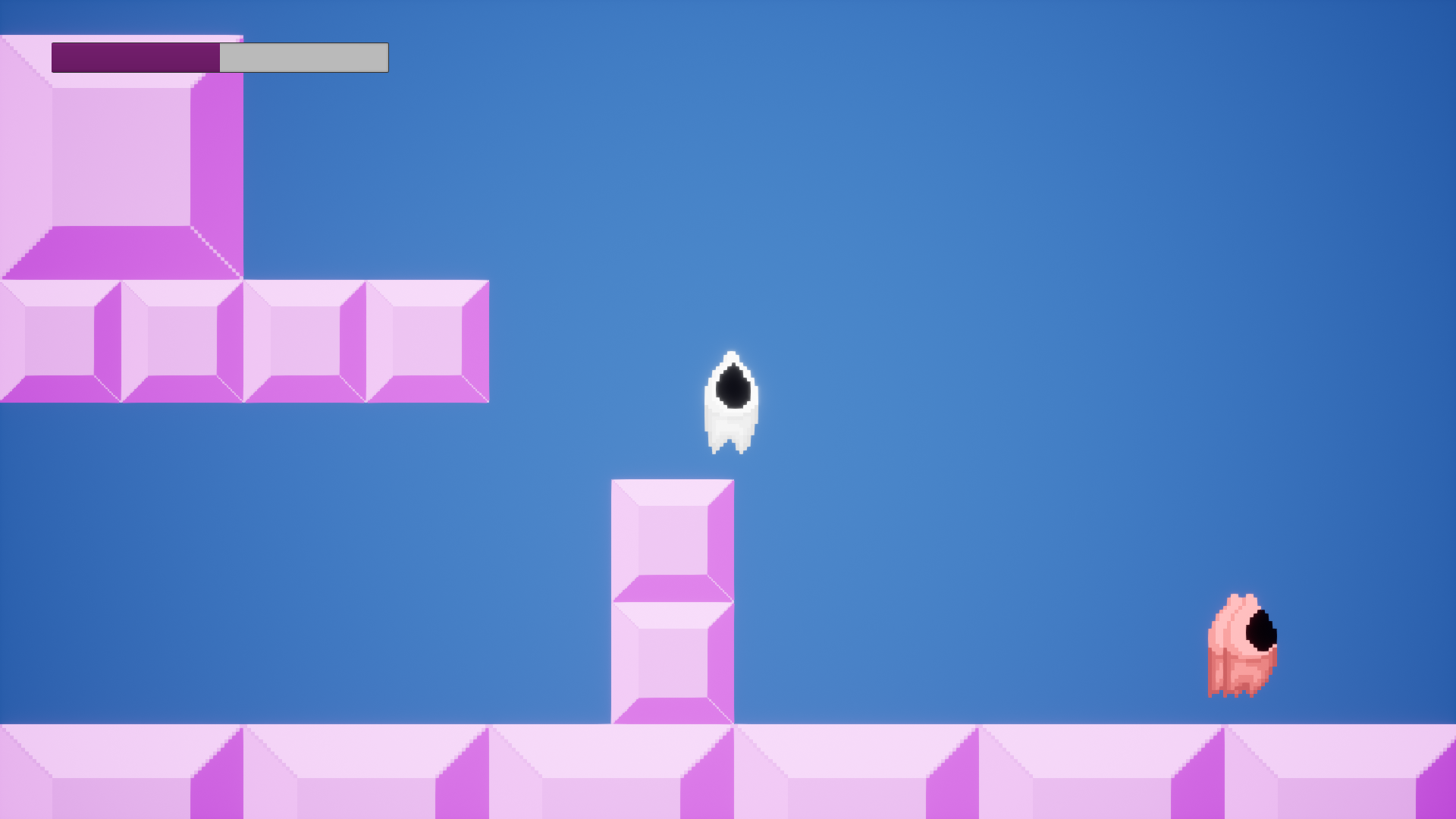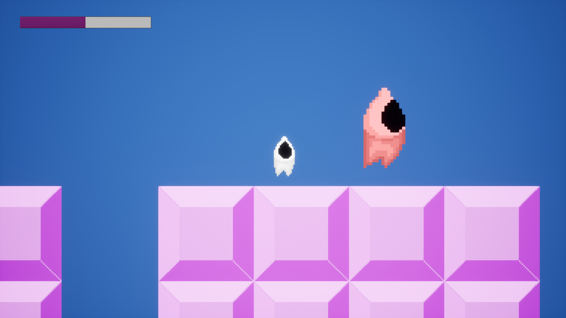 A single level 2D game where the player must platform and fight their way through different enemies to reach the end. If they fall off the stage or lose their health, they will restart at the beginning of the level.
