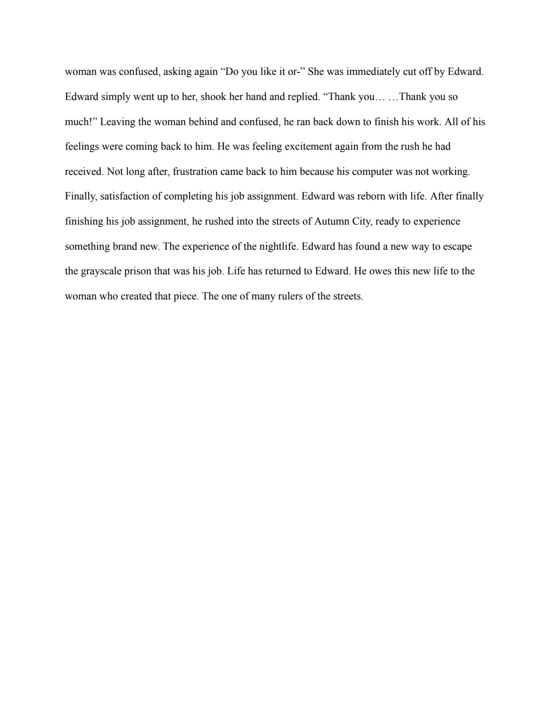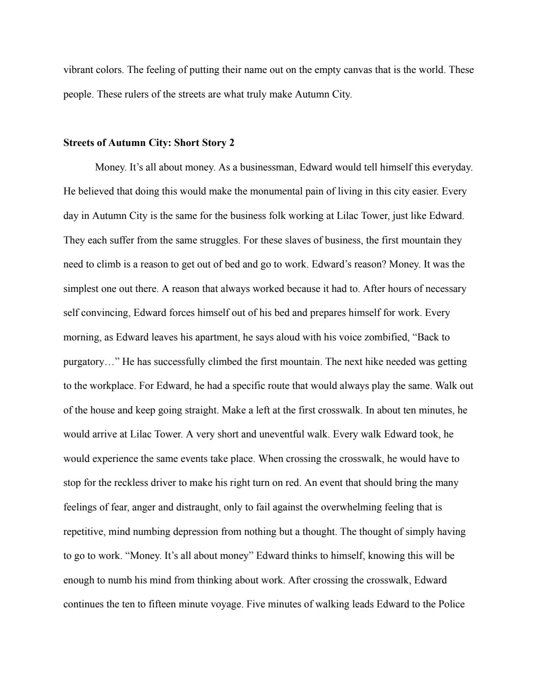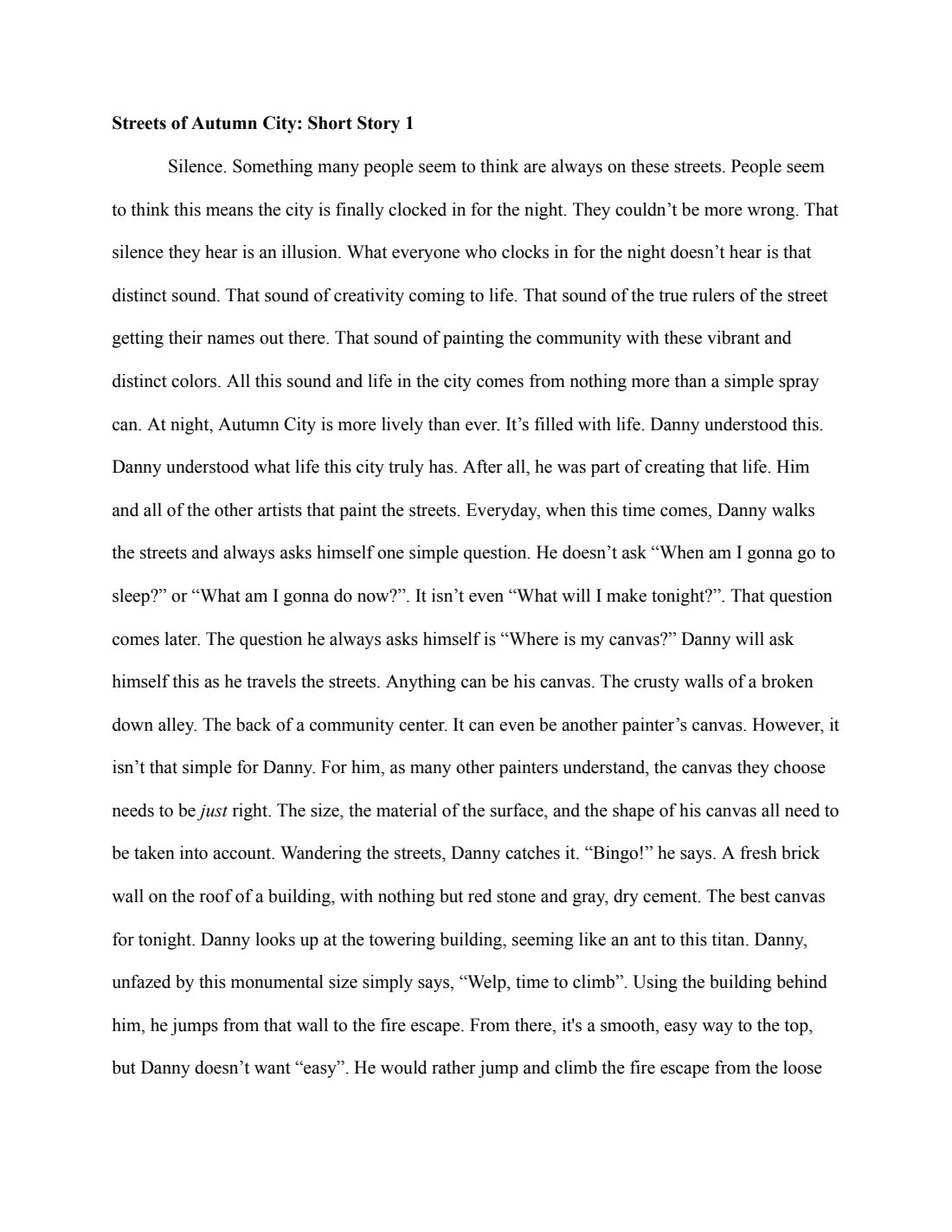 Fictional stories of a world called the “Streets of Autumn City”. The stories focuses on art and the importance it has in the world.